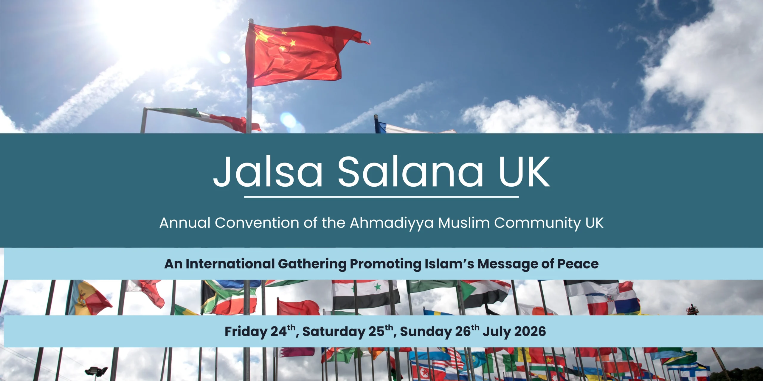 The Jalsa Salana of the Ahmadiyya Muslim Community UK is a unique event that brings more than 40,000 participants from more than 100 countries to increase religious knowledge and promote a sense of peace and brotherhood. Eminent speakers discuss a range of religious topics and their relevance to contemporary society. Additionally, a number of parliamentarians, civic leaders and diplomats from different countries also address the gathering and underline the convention’s objective of enhancing unity, understanding and mutual respect.